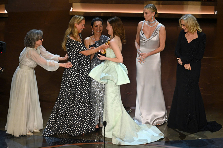 Sebagai pemenang di kategori yang sama tahun lalu, Michelle Yeoh berhak memberikan piala kepada pemenang baru.