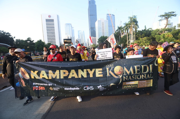 Kampanye tersebut dilakukan di momen car free day, Minggu (21/9). Ketua Persatuan Seniman Komedi Indonesia (PaSKI), Jarwo Kwat, mengungkapkan bahwa kampanye tersebut dibuat, agar semakin banyak masyarakat yang tahu adanya Hari Komedi Nasional.