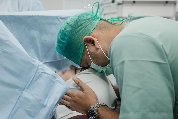 Kesha mengunggah momen persalinan ketiganya di akun Instagram pribadinya. Saat persalinan, ia didampingi oleh sang suami tercinta, Adhi Permana.