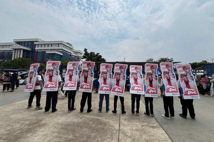 Tak hanya para penggemar Seventeen, ada juga kampanye dari para penggemar Zerobaseone. Sekelompok pria atau adsman berkeliling sambil membawa banner wajah Zhang Hao.