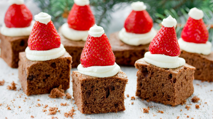 Brownies favorit keluarga Anda bisa tampil lebih istimewa untuk perayaan Natal kali ini. Beli brownies siap makan, potong-potong kotak, beri krim kue dan buah stroberi.