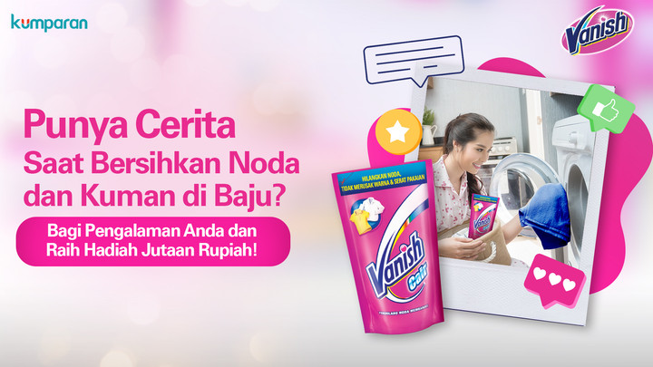 Pada 24 Agustus sampai 22 September 2020 lalu, Vanishxkumparan mengadakan writing competition dengan mengusung tema “Menghilangkan Noda, Merawat Serat, Menjaga Warna tetap Cemerlang, dan Membunuh Kuman Pada Pakaian”. Melalui kompetisi ini, peserta diajak untuk berbagi pengalaman menarik mengenai pengalaman menghilangkan noda dan kuman, hingga tips untuk merawat baju keluarga atau serat bersama Vanish.