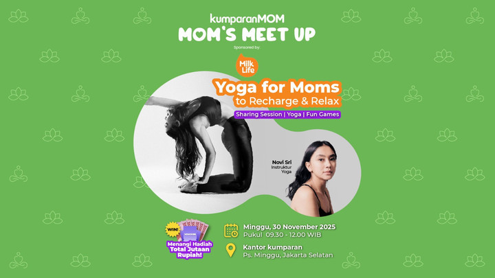 Di bulan November ini, kumparanMOM Mom’s Meet Up menghadirkan sesi Yoga for Moms, to Recharge and Relax. Acara yang akan digelar Minggu, 30 November 2025 di kantor kumparan, Pasar Minggu, Jakarta Selatan, jam 09.30-12.00 WIB ini juga didukung oleh MilkLife.