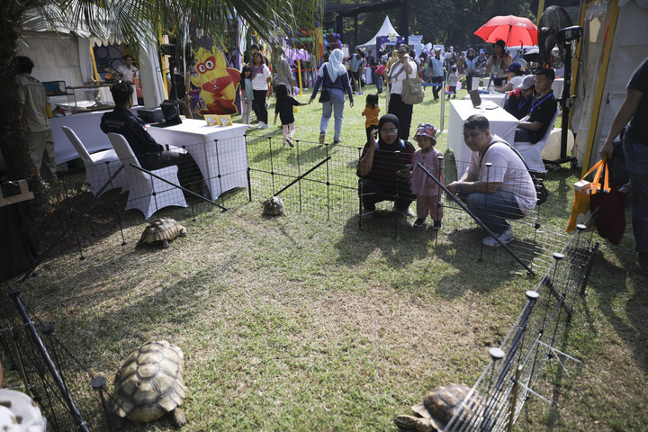 โAda makanan pendampingnya, semacam pelet khusus kura-kura tapi pemberiannya cukup seminggu sekali,โ ujar Panji dari komunitas RoomPets Djakarta di Ex-Taman Anggrek GBK, Senayan, Minggu (27/7).