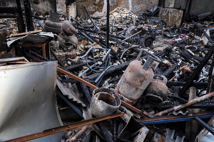 Mereka juga menyulut api yang menyebabkan kios dan kendaraan di lokasi hangus terbakar.