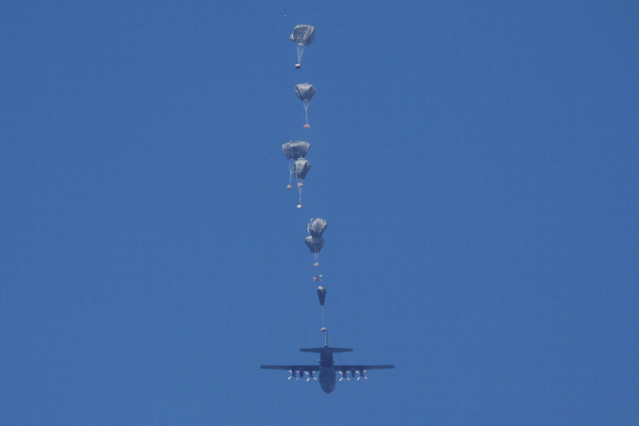 Tiga pesawat militer AS C-130 mengirimkan lebih dari 38.000 makanan ke wilayah Palestina itu. PBB menyebut setidaknya 576.000 orang berada selangkah lagi dari kondisi kelaparan di sana.