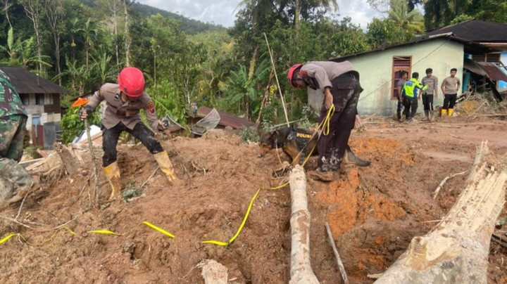 Aslan Si Anjing Polisi K-9 yang Tak Lelah Cari Korban Longsor di Tapanuli Utara