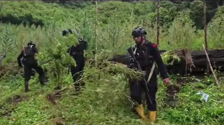 Mereka memusnahkan ladang-ladang ini dengan memotong batang pohon ganja tersebut. Kemudian membakarnya dengan bensin.