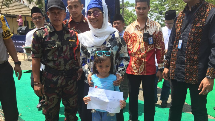 Seorang anak perempuan berusia delapan tahun membawakan surat cinta untuk Menteri Kelautan dan Perikanan Susi Pudjiastuti. Ia berkeliling membawa surat itu di Sekolah Pesantren Entrepreneur Al Maun Muhammadiyah (S-PEAM) Pasuruan, Minggu (4/11).
