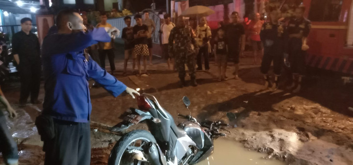 "Pengendara motor tidak tahu di depannya ada genangan air ternyata genangan itu ada lubangnya bekas galian proyek dan langsung terperosok masuk ke dalam lubang gorong," jelasnya.
