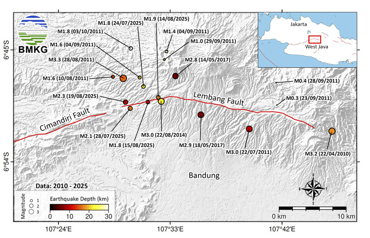Badan Meteorologi, Klimatologi, dan Geofisika (BMKG) sebelumnya melaporkan peningkatan aktivitas kegempaan Sesar Lembang sejak 24 Juli 2025. Aktivitas kegempaan ini khususnya terjadi pada segmen Cimeta (barat).