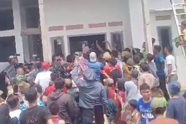 Aksi penggerudukan itu direkam dan videonya beredar di grup-grup WhatsApp. Dalam video itu terlihat warga emosi saat pelaku diamankan polisi. Mereka melemparkan botol mineral ke mobil polisi yang membawa pelaku.