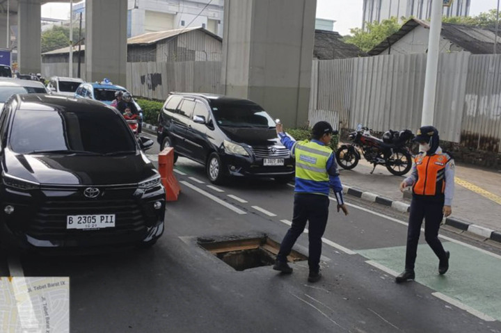 "Kami sudah amankan sementara dengan menggunakan pelat baja agar tidak membahayakan pengguna jalan," ujarnya.