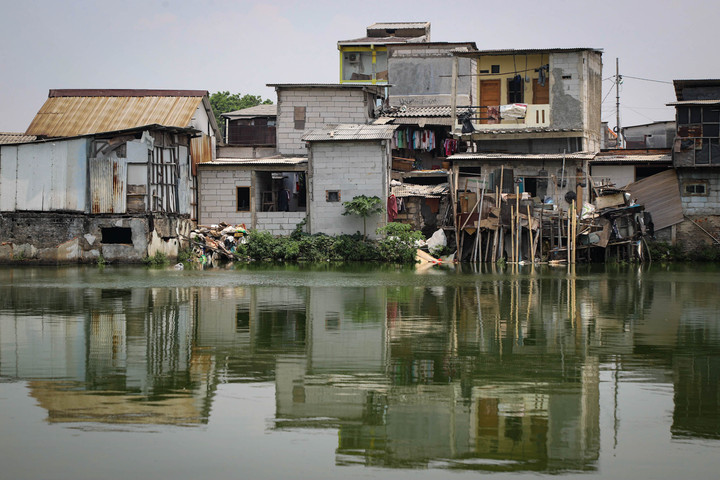 Krisis air bersih masih membayangi warga Kampung Apung, Kapuk Teko, RT 10/RW 01, Kalideres, Jakarta Barat.
