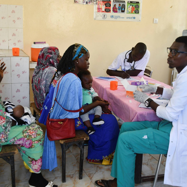 Petugas kesehatan bersiap memeriksa anak-anak yang menunjukkan tanda-tanda gizi buruk di rumah sakit Notre Dame des Apotres, N'Djamena, Chad, Senin (26/9/2022).kumparanNEWS