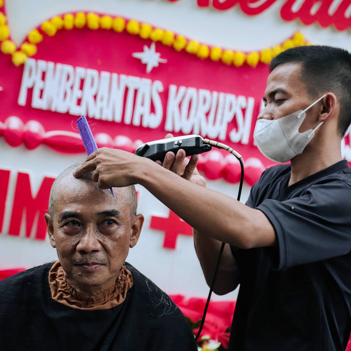 Mereka yang mengikuti aksi ini yakni eks Ketua KPK, Abraham Samad; mantan Raja OTT KPK, Harun Al Rasyid; dan mantan penyidik senior KPK, Novel Baswedan. Rambut mereka dipangkas habis oleh tukang cukur di depan Gedung Merah Putih KPK.
