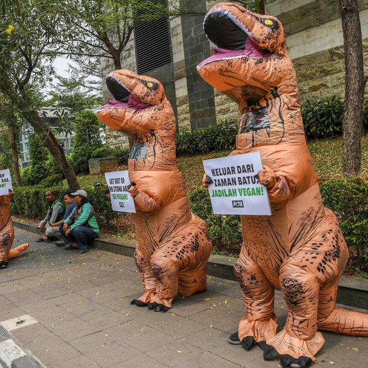 Foto: Aksi "Dinosaurus" Kampanye Gaya Hidup Vegetarian