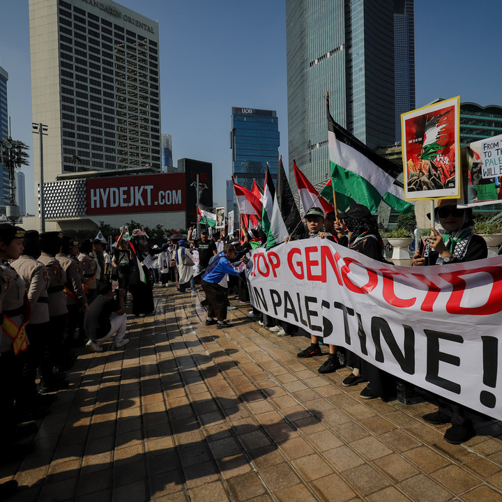 Dalam aksinya mereka mengajak semua yang peduli untuk bergabung mendukung kemerdekaan Palestina dan menuntut Israel segera menghentikan genosida.kumparanNEWS