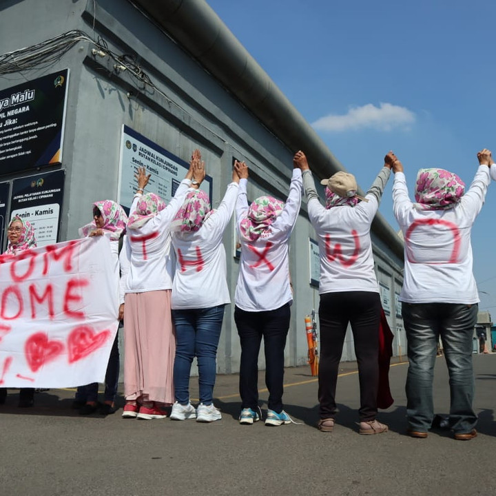 Sejumlah emak-emak pendukung Tom Lembong menggelar aksi damai di Rutan Cipinang.kumparanNEWS
