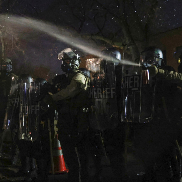 Polisi melemparkan gas air mata dan granat kejut untuk berupaya membubarkan kerumunan massa tak lama setelah dimulainya jam malam. #kumparanNEWSkumparanNEWS