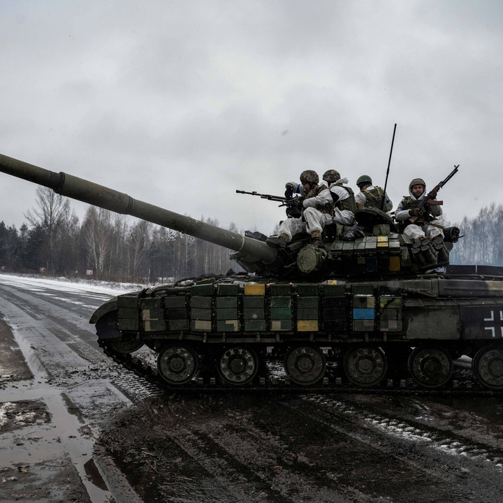 Prajurit Ukraina menggelar latihan di perbatasan dengan Belarus, Ukraina, Jumat (3/2).kumparanNEWS