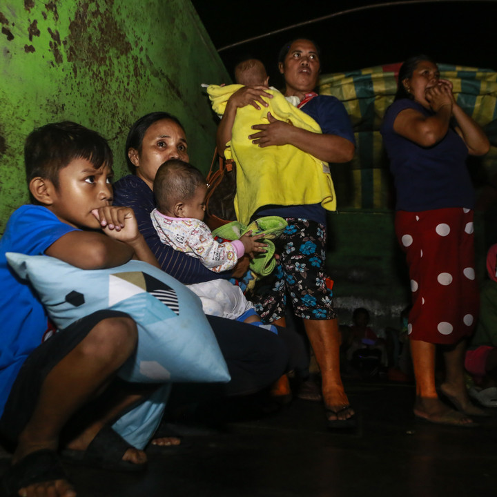 Sejumlah warga berada di atas truk menuju lokasi pengungsian di Desa Sangaji Nyeku, Kabupaten Halmahera Barat, Maluku Utara, Rabu (15/1/2024).kumparanNEWS