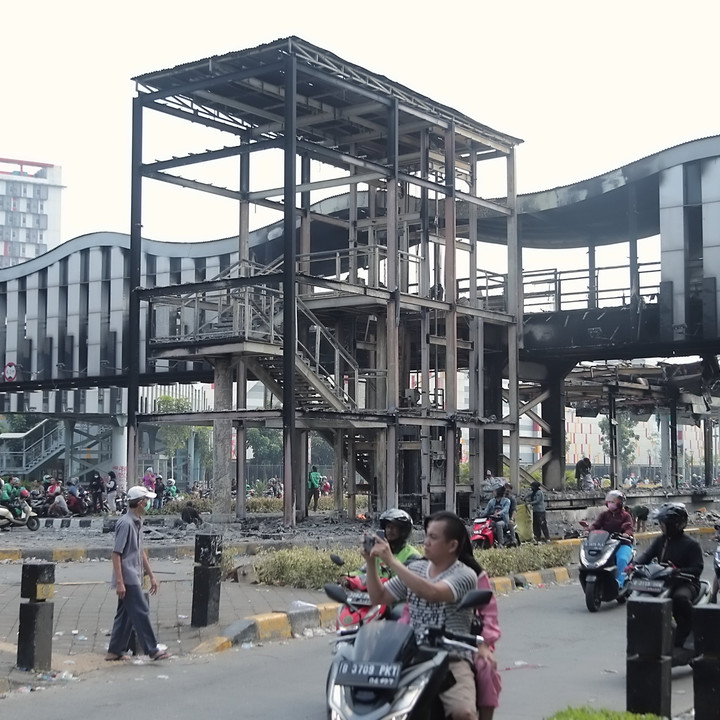 Foto: Hangus Terbakar Saat Demo, Halte TransJakarta Senen Tinggal Kerangka