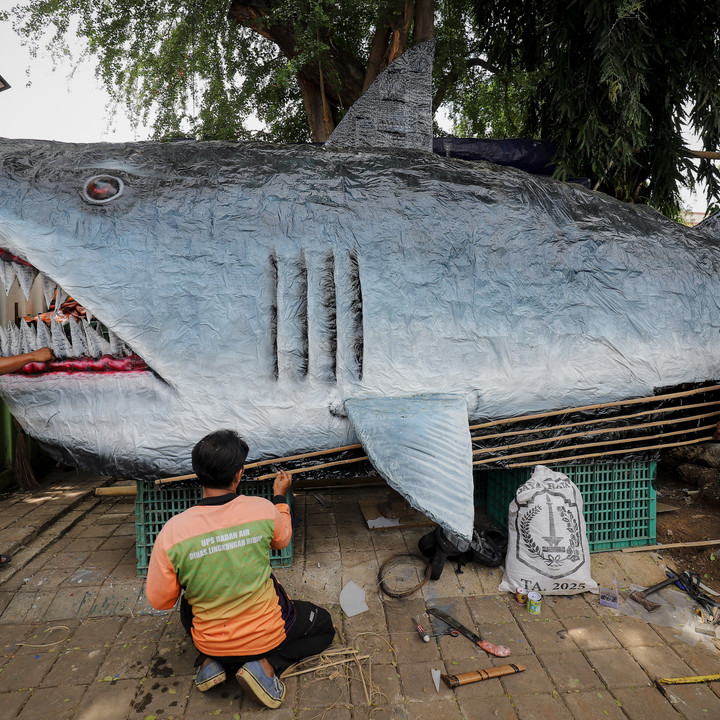 Pembuatan perahu ikan hiu ini sudah dikerjakan petugas UPS Johar Baru sejak bulan Juli. Nantinya, Hiu Si Joba akan diikutsertakan dalam lomba Festival Cinta Lingkungan (Cilung) 2025 pada Minggu (28/9).