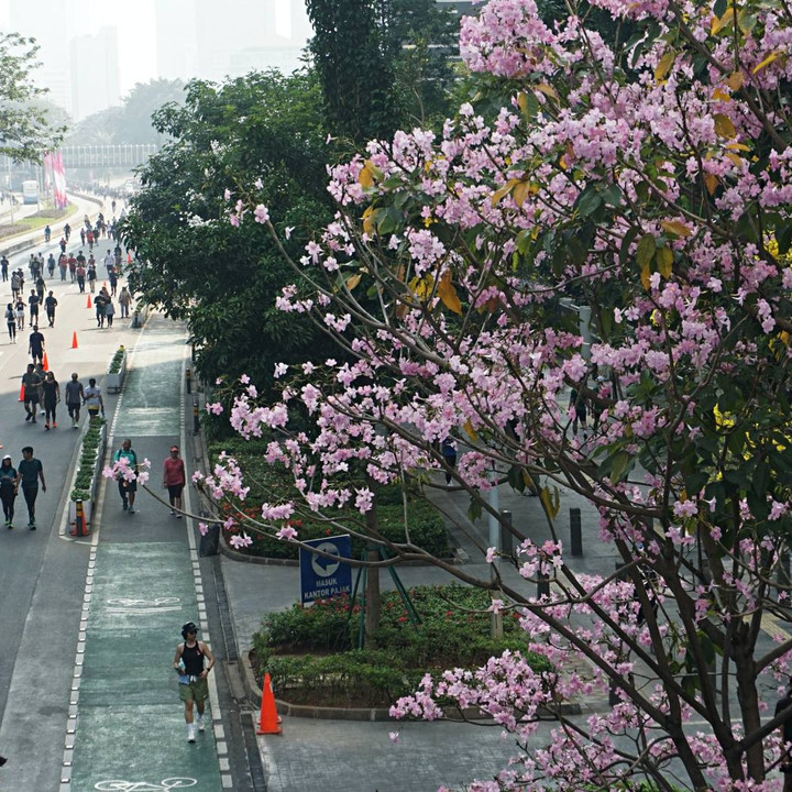 Foto: Jakarta Rasa Tokyo, Bunga Tabebuya Bermekaran di Jalan Sudirman
