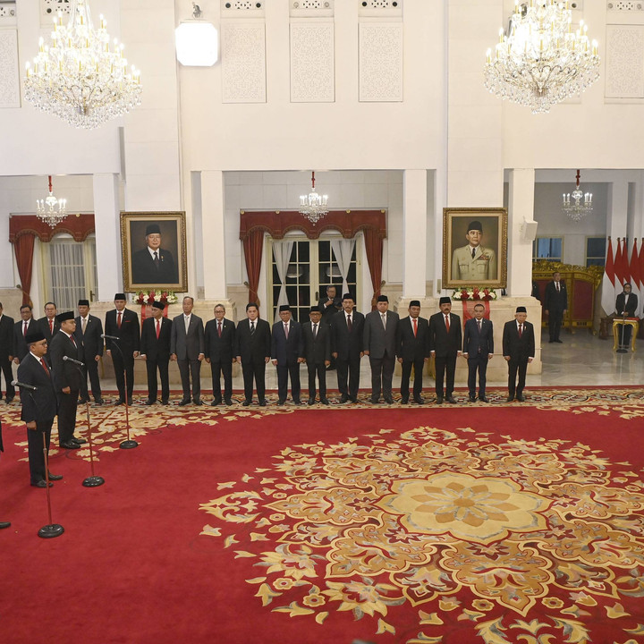 Suasana pelantikan menteri dan wakil menteri di Istana Negara, Jakarta, Senin (19/8/2024).kumparanNEWS
