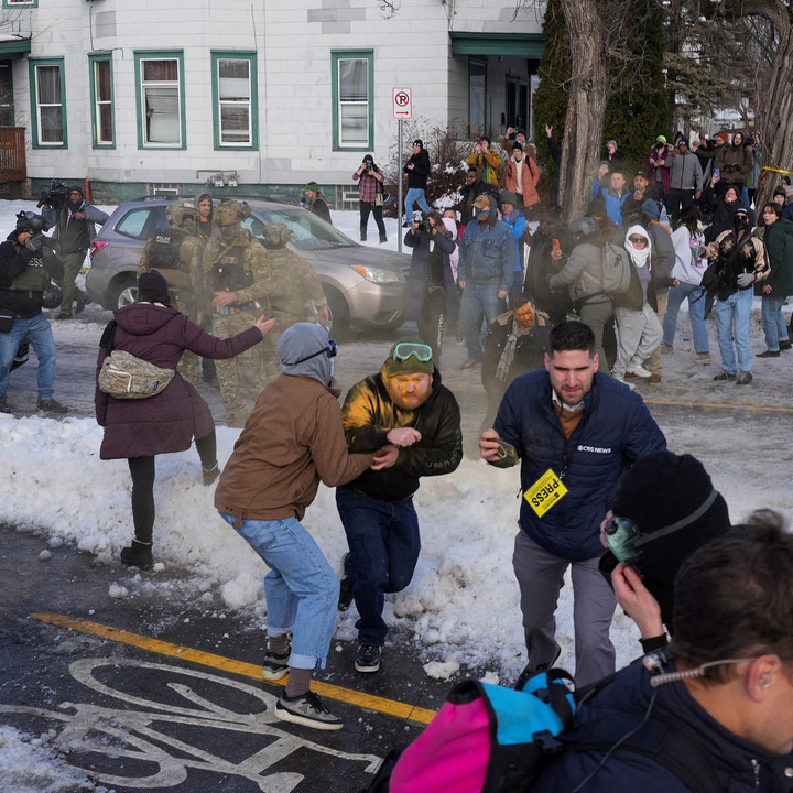 Sejumlah petugas keamanan menyemprotkan gas kimia dan menangkap sejumlah demonstran yang menuntut keadilan atas kasus penembakan seorang wanita berusia 37 tahun di dalam mobilnya di Minneapolis pada hari Rabu (7/1/2026).