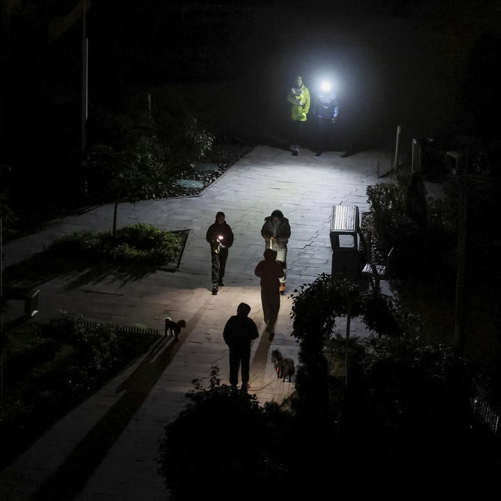 Aktivitas di ibu kota Ukraina mati suri imbas terjadinya pemadaman listrik. Terlihat para warga yang keluar harus menggunakan lampu senter untuk membantu penglihatan.
