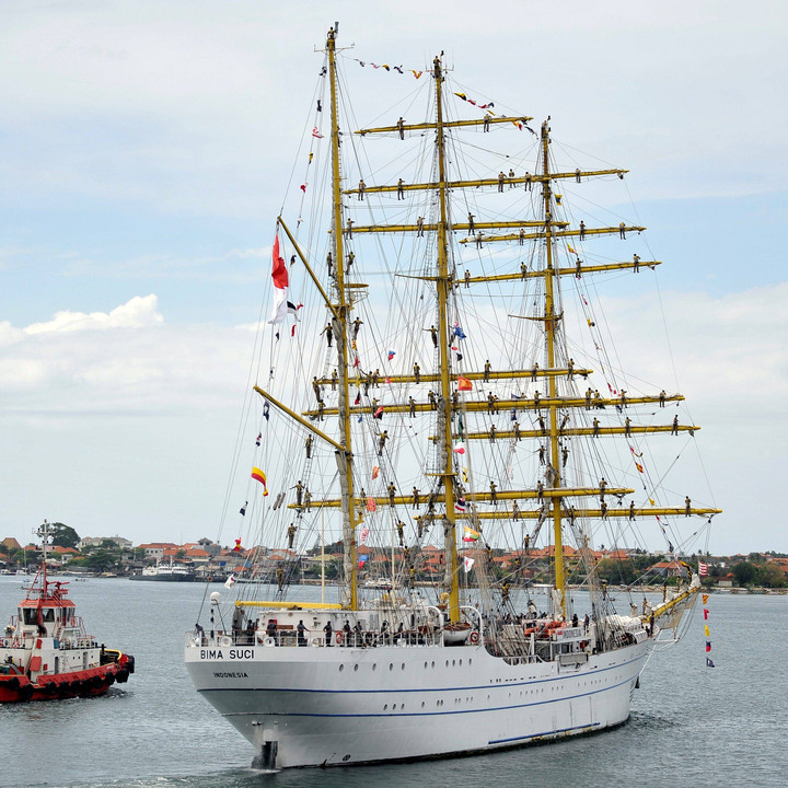 Kapal Layar Latih Akademi Angkatan Laut KRI Bima Suci-945 tiba di Bali pada Selasa (11/10) dalam rangkaian melaksanakan pendidikan taruna.