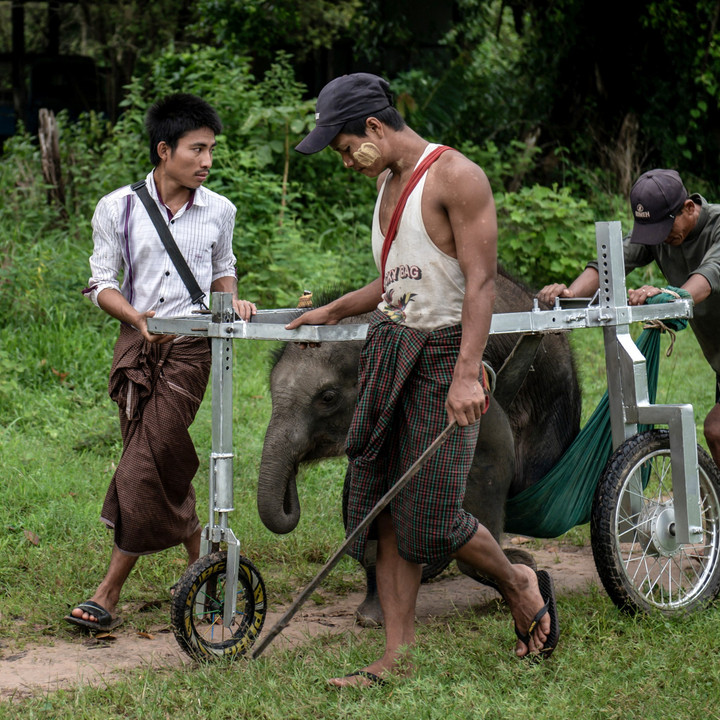 Foto: Kyaw Pearl, Bayi Gajah yang Gunakan Kursi Roda di Kamp Wingabaw di Myanmar