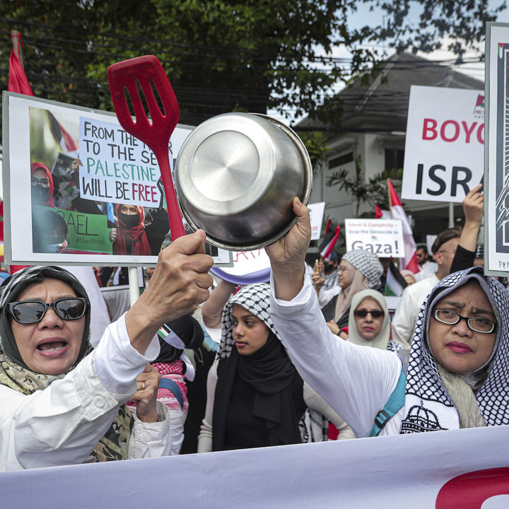 Foto: Massa Aksi Bela Palestina Bawa Alat Masak, Simbol Kelaparan di Gaza