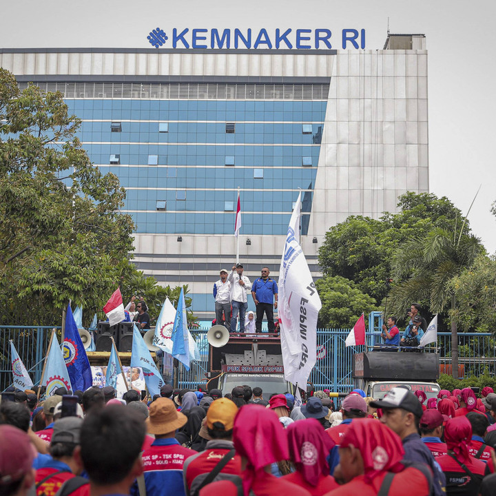 Foto: Massa Buruh Gelar Unjuk Rasa di Kantor KemnakerkumparanNEWS