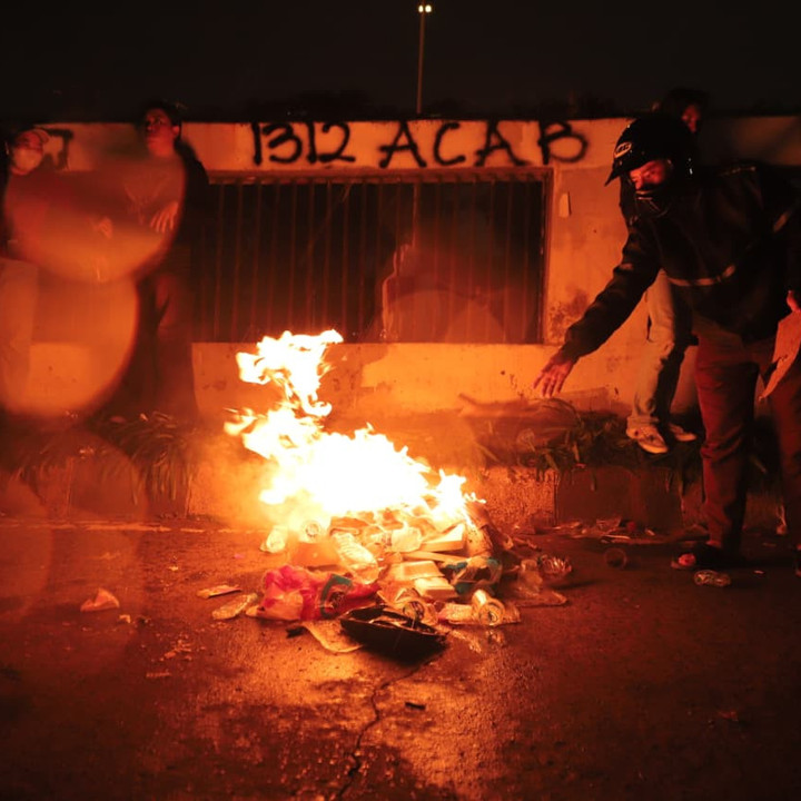 Hingga kini, massa masih bertahan. Mereka tampak sudah mulai membakar barang-barang. Aksi tersebut menyebabkan api membara di lokasi kejadian.