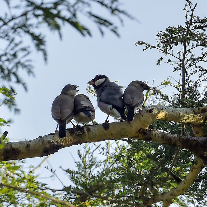Burung Gelatik Jawa (Padda oryzivora) bertengger di atas dahan pohon di Taman Nasional Baluran, Situbondo, Jawa Timur, Sabtu (18/6).kumparanNEWS