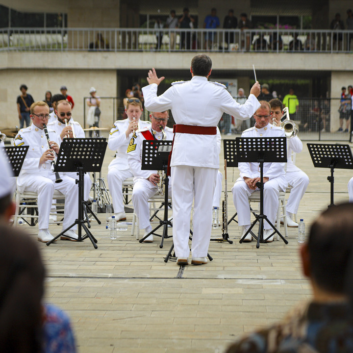 Foto: Menikmati Hari Libur Bersama UK Royal Marines Band di Lapangan Banteng