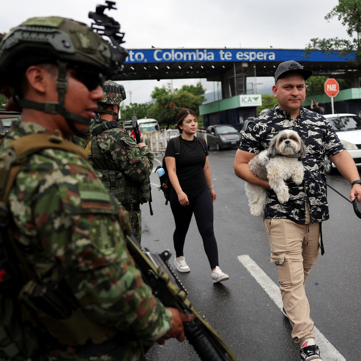 Tentara Kolombia berjaga di perbatasan antara Venezuela dan Kolombia di Cucuta, Kolombia usai Presiden AS Donald Trump pada Minggu (4/1) mengancam Kolombia dengan tindakan militer.kumparanNEWS