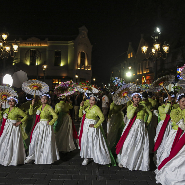 300 wanita berkebaya menari di Kota Lama, Semarang menyambut Hari Kebaya Nasional 2025.kumparanNEWS