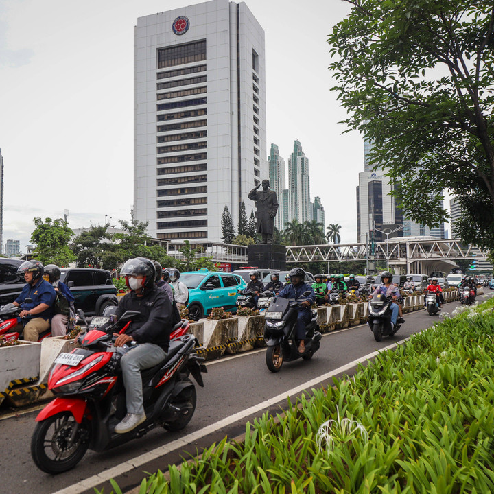Foto: Pemotor Masih 'Kuasai' Jalur Sepeda di Jalan Sudirman-Thamrin