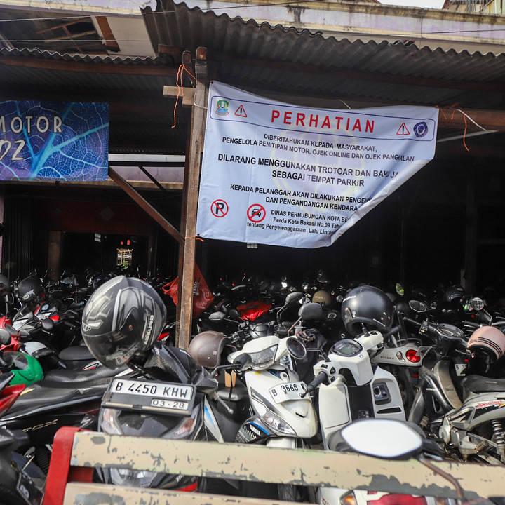 Puluhan hingga ratusan sepeda motor memenuhi parkiran rumahan yang berada di depan Stasiun Bekasi sejak pagi hari hingga petang.
