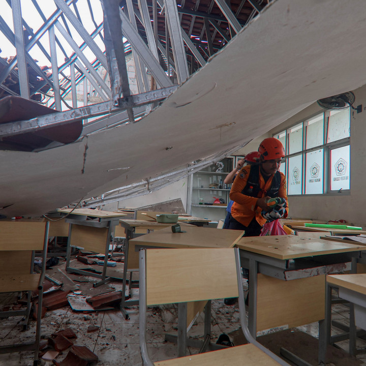 Foto: Puluhan Siswa di SMKN 1 Cileungsi Tertimpa Atap Kelas yang Ambruk