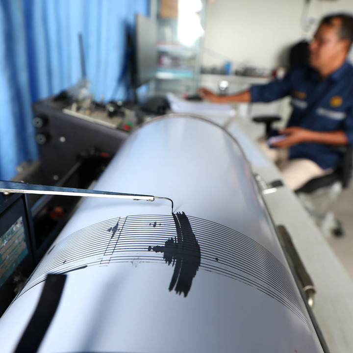 Petugas Pusat Vulkanologi dan Mitigasi Bencana Geologi memperhatikan seismorgram dari aktivitas gunung api Burni Telong di pos pengamatan, Bener Meriah, Aceh, Rabu (31/12/2025).