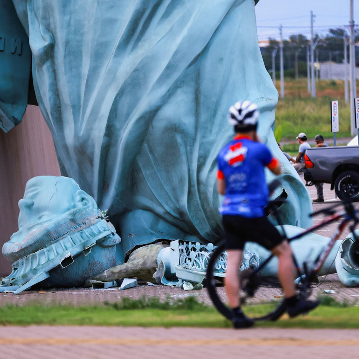 Foto: Replika Patung Liberty di Brasil Roboh Diterjang Angin Kencang