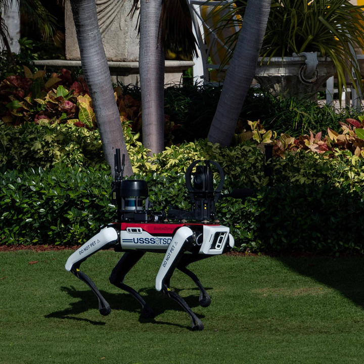 Robot anjing Secret Service berpatroli di kediaman Presiden terpilih AS Donald Trump di Mar-a-Lago di Palm Beach, Florida, Amerika Serikat.