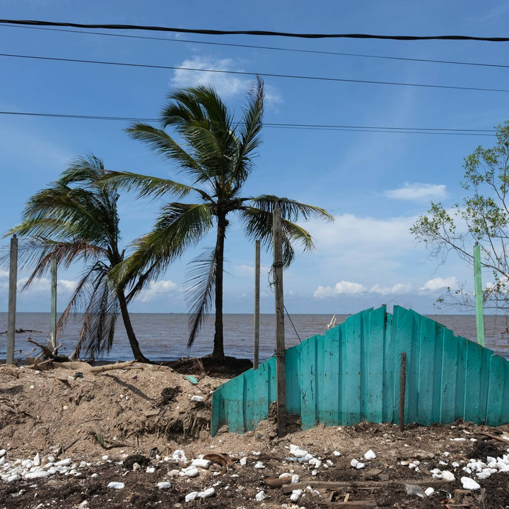 Permukiman warga hancur akibat abrasi dan angin kencang di Desa Kuala Karang Kecamatan Teluk Pakedai, Kabupaten Kubu Raya, Kalimantan Barat, Sabtu (14/1).kumparanNEWS