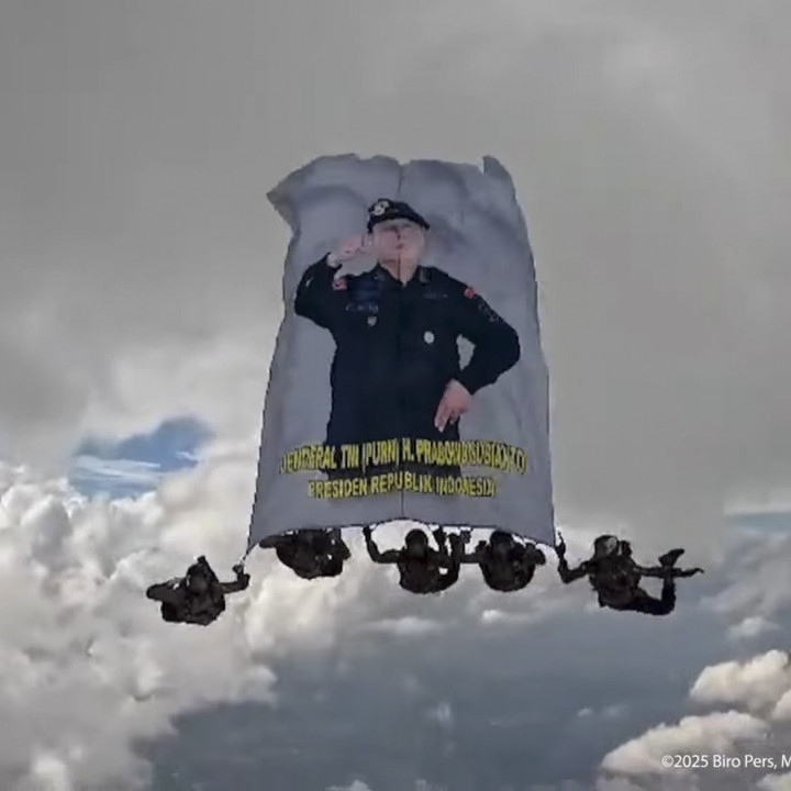 Foto: Saat "Prabowo" Terjun Payung pada Momen HUT ke-79 Bhayangkara di Monas