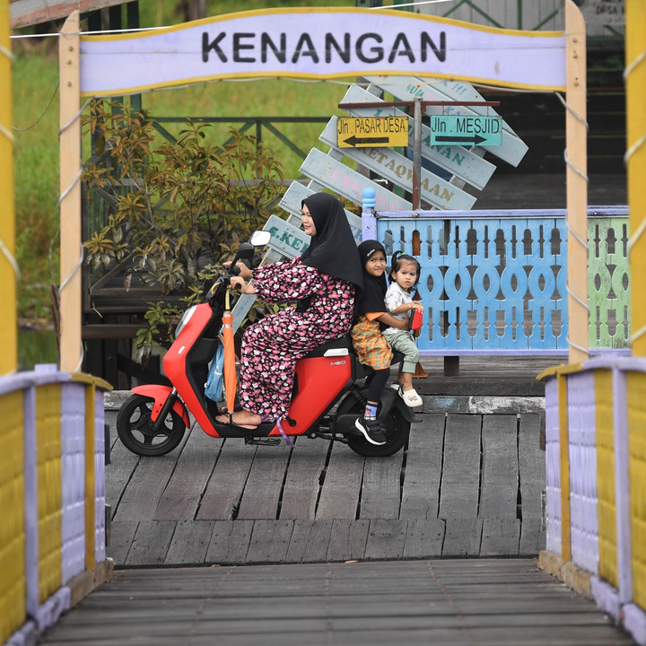 Sepeda listrik mejadi transportasi alternatif yang ramah lingkungan bagi warga Desa Muara Enggelam, Muara Wis, Kutai Kartanegara, Kalimantan Timur.